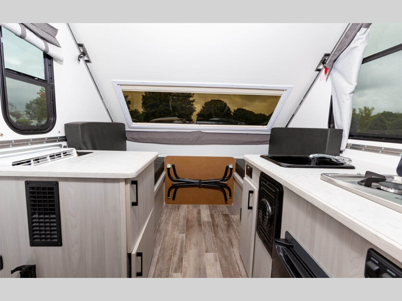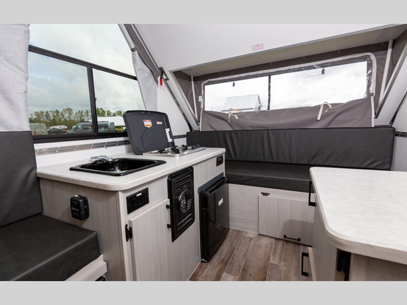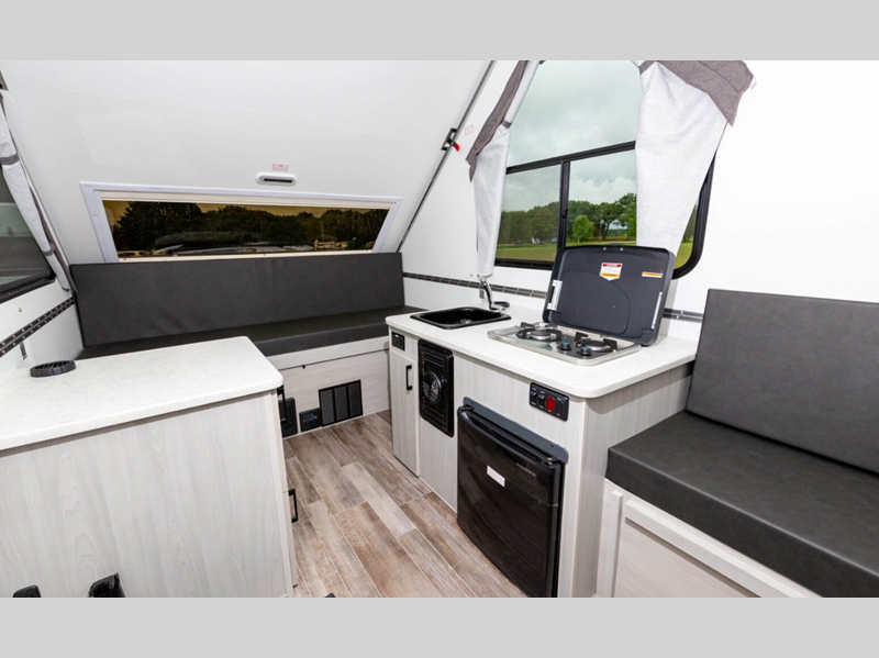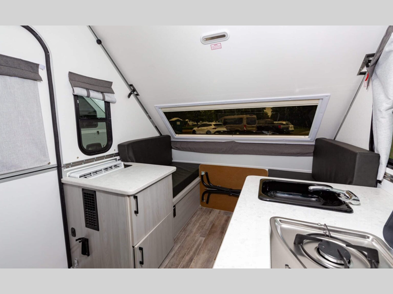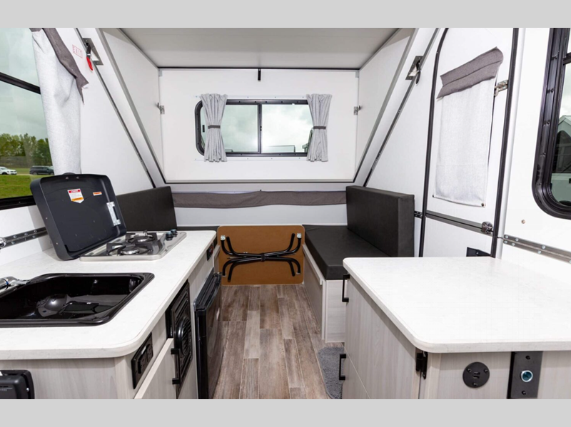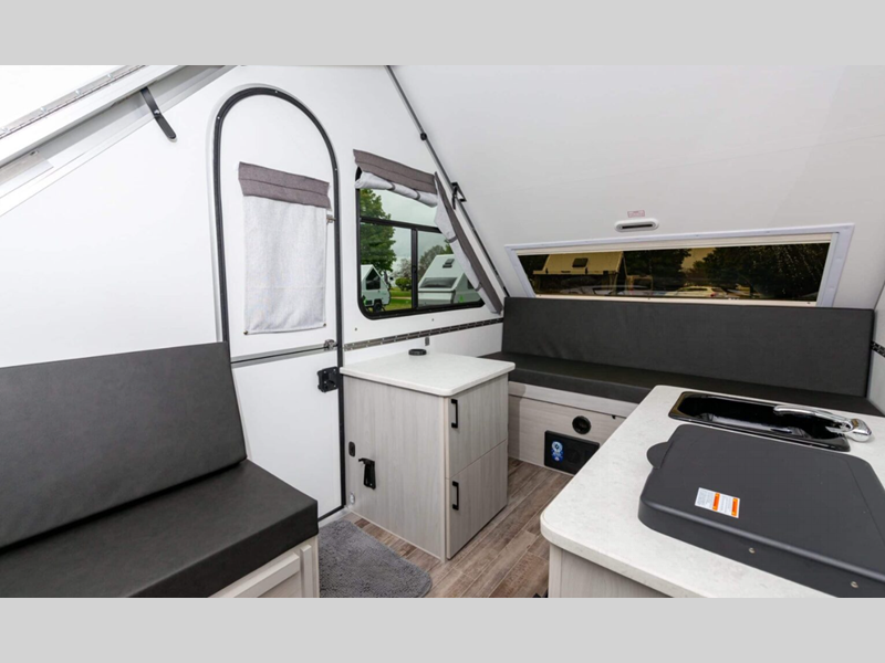 Aliner Ranger A-frame camper 10 Rear Dinette highlights: Rear Dinette Storage ... more about Ranger 10 Rear Dinette