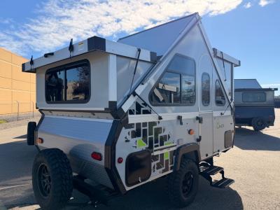 Looking for a camper that you can relax and unwind inside when you aren't exploring outdoors? Need sleeping space for two or three? Well the rear sofa bed in this camper converts into a 56" x 76" bed and the front dinette converts into a 46" x 76" bed. You can prepare delicious meals with the two burner stove, clean up with the sink, and keep your perishables fresh within the 1.7 cu. ft. 12V refrigerator underneath the stove and sink. You might even like to add an optional soft or hard dormer to the front or rear of this unit, and/or the optional Off Road package.